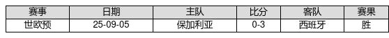 西班牙 VS 保加利亚两队近10年的交战次数为1场,西班牙1胜0平0负,赢球概率为100.0%,平局概率为0.0%,输球概率为0.0%。