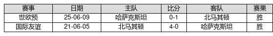 北马其顿 VS 哈萨克斯坦两队近10年的交战次数为2场,北马其顿2胜0平0负,赢球概率为100.0%,平局概率为0.0%,输球概率为0.0%。