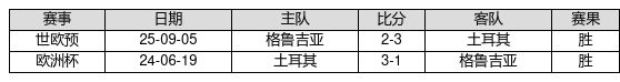 土耳其 VS 格鲁吉亚两队近10年的交战次数为2场,土耳其2胜0平0负,赢球概率为100.0%,平局概率为0.0%,输球概率为0.0%。