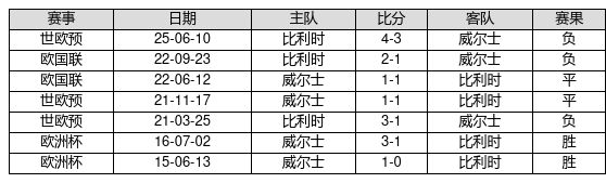 威尔士 VS 比利时两队近10年的交战次数为7场,威尔士2胜2平3负,赢球概率为28.6%,平局概率为28.6%,输球概率为42.9%。