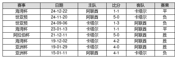 卡塔尔 VS 阿联酋两队近10年的交战次数为8场,卡塔尔3胜2平3负,赢球概率为37.5%,平局概率为25.0%,输球概率为37.5%。